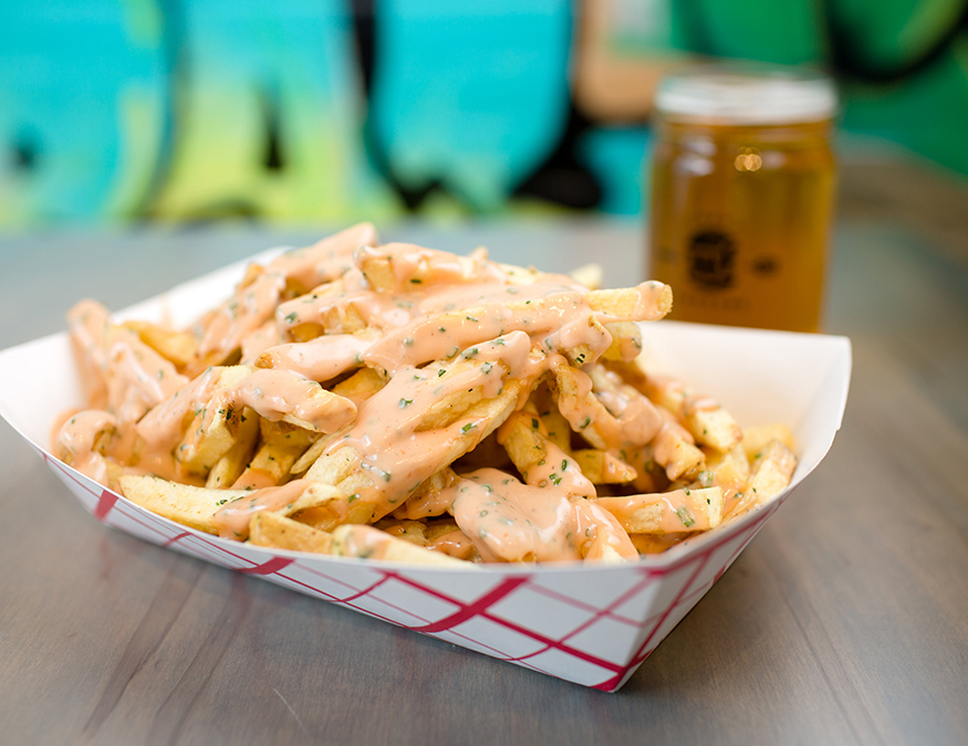 Whenever possible the ingredients we use are locally sourced, like our custom blended and fresh ground beef patties, locally-made beer, produce and house grown herbs. Since where we source our ingredients changes depending on what is available, ask us about our current local sources next time you stop in.